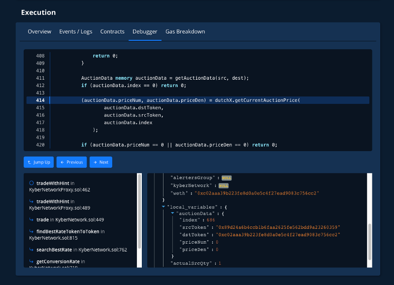To see it in action, click on the Debugger tab when viewing a transaction. Iāll use the same transaction we used to showcase the Events / Logs feature.
