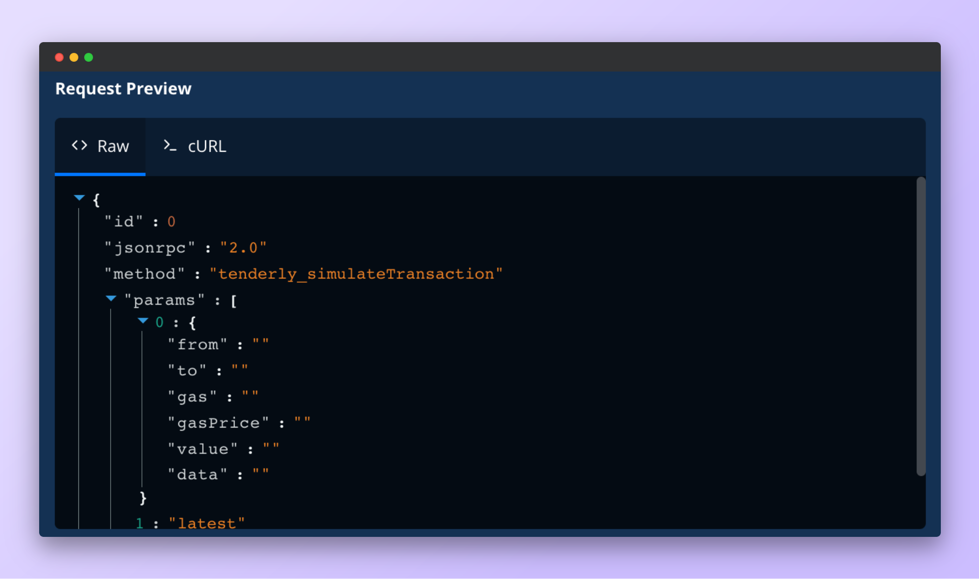 To view the results of your simulation, take a look at the Response Preview panel. If you’re happy with how you’ve configured the simulation request, you can go to the Request Preview panel to copy the code snippet and paste it into your dapp.