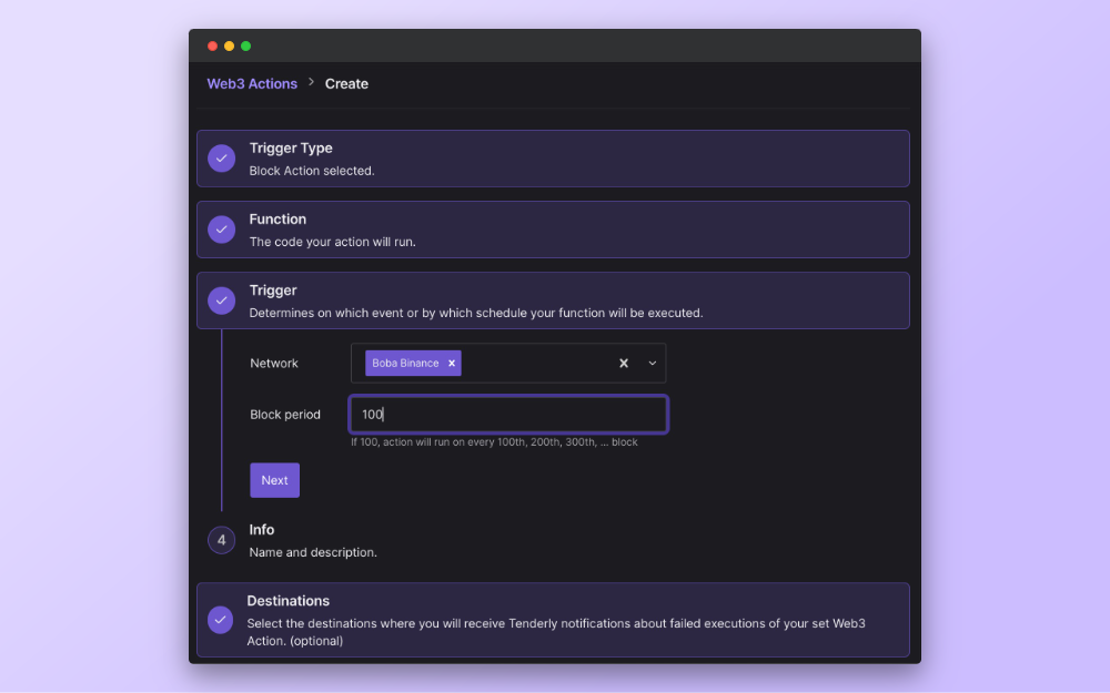 To take it a step further, you can connect this system with Tenderly Web3 Actions. As a serverless backend, Web3 Actions can execute your custom code in response to pre-defined triggers relevant to your project.