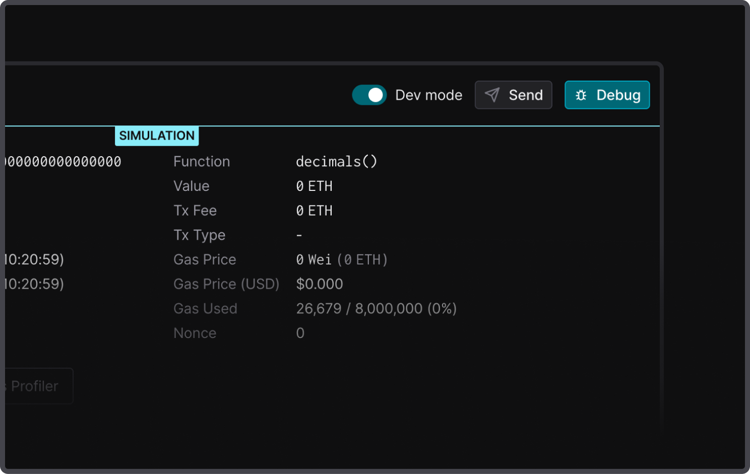 Experiment more quickly by simulating and sending transactions on Virtual TestNets with just a few clicks. Navigate between the Simulate and Send tabs to iterate on Virtual TestNets without unintended changes to the environment states.