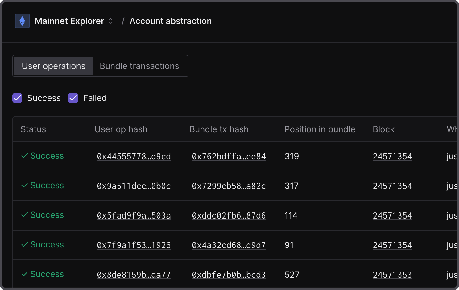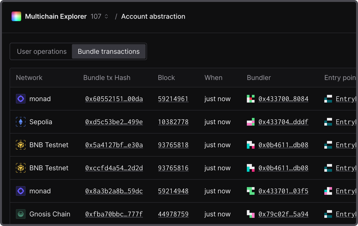Open the list of the latest bundle transactions to get a detailed overview of bundle transactions across chains.