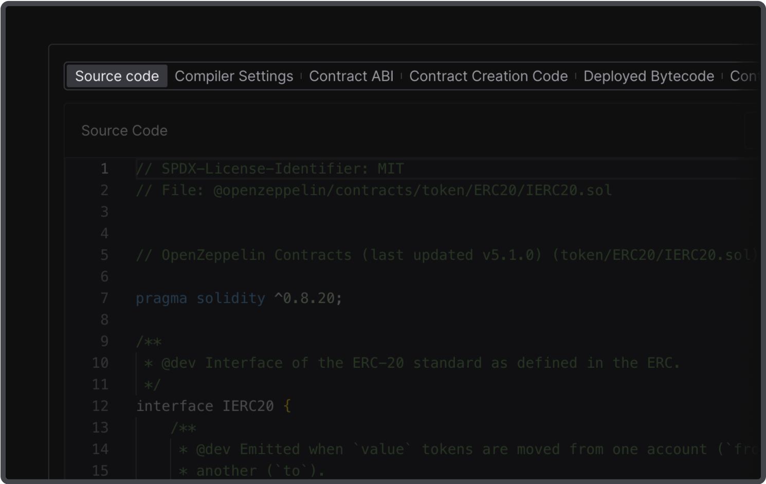 Examine a contract’s source code more easily when exploring address activity. Get a breakdown of the source code by tabs to inspect the information in a more accessible way.