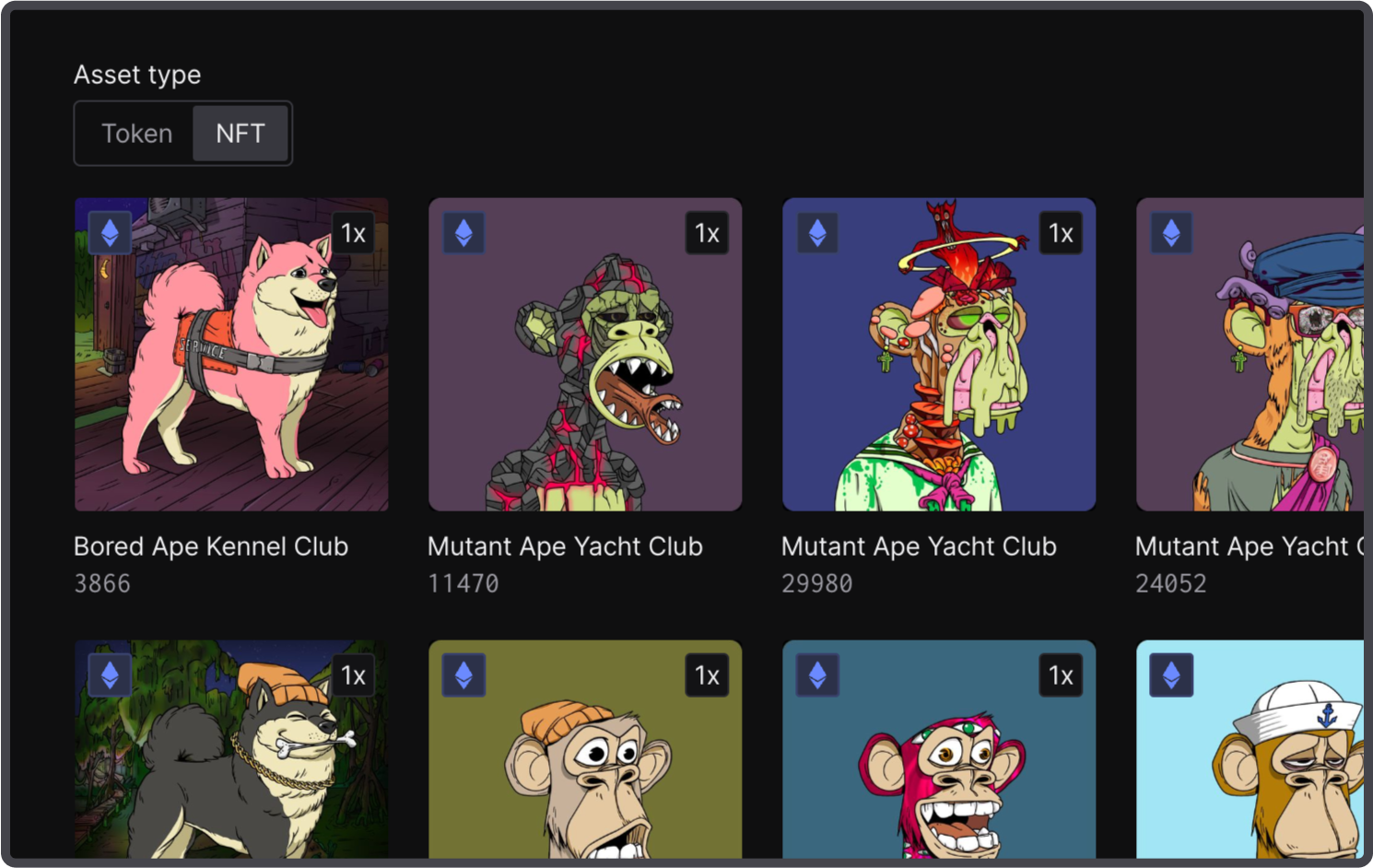 Explore the same information for NFT holdings, with a detailed overview of all the NFT collections an address has across chains.