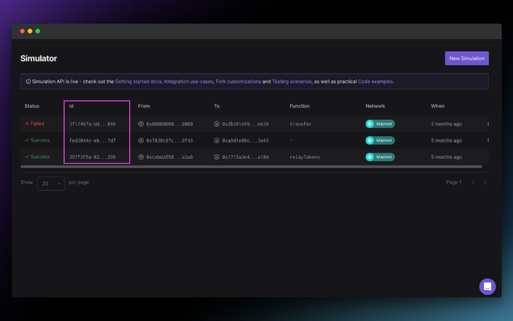 Navigating through your simulations is now a breeze. We’ve added the simulated transaction ID as a new column on the Simulations Overview page. This addition means you can quickly pinpoint simulations of interest from the Dashboard.