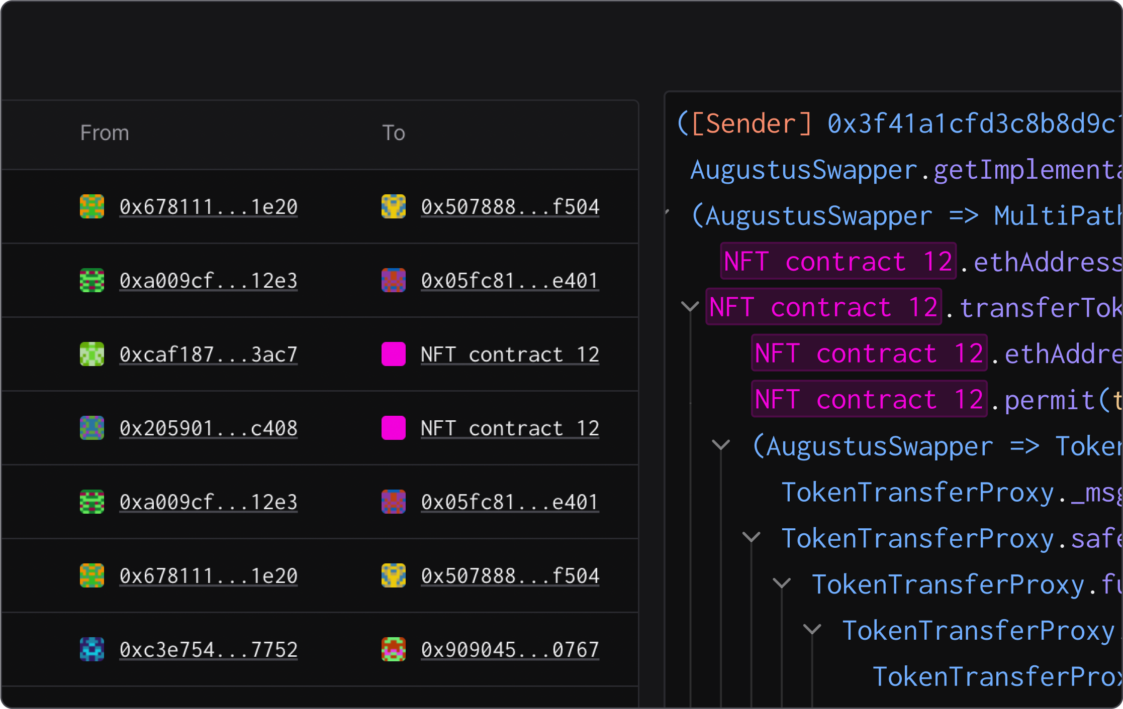 You can also take quick action on any address to set up an alert, run a simulation, or dive into further analysis. Explore and interact with any address directly from the transaction execution trace, without switching context. The addresses are now clickable too, enabling you to quickly open the execution trace.