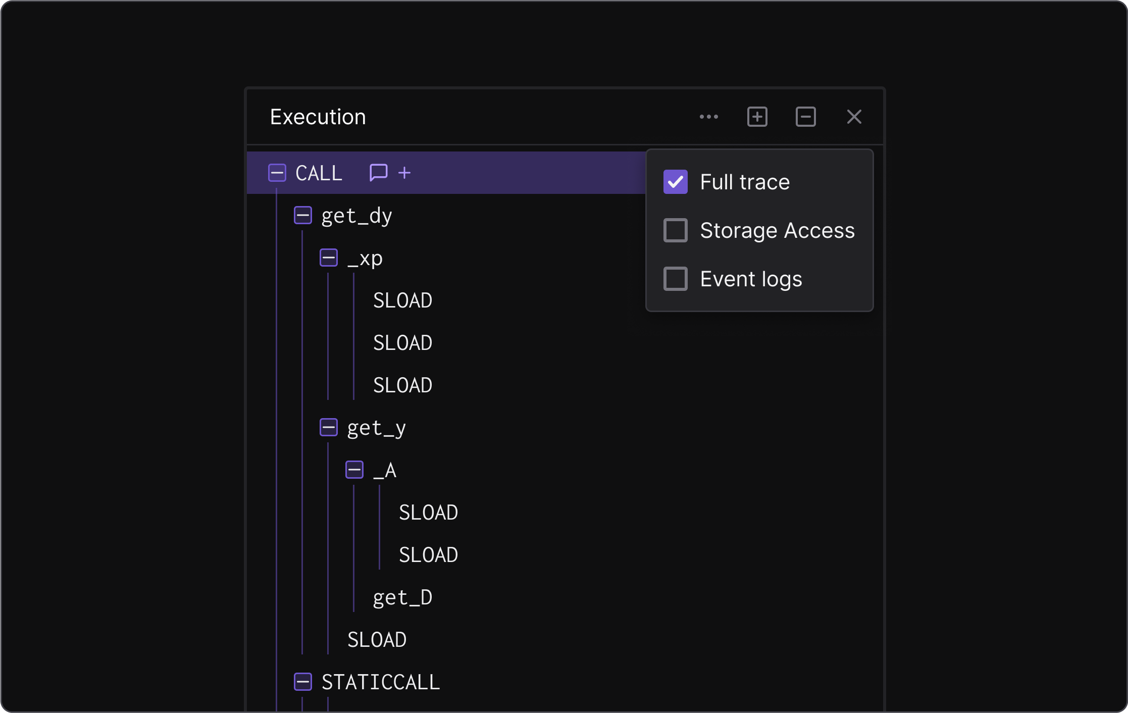 Storage access and event logs are now also available in the Debugger execution trace. Just check the boxes of the information you want to show in the trace and get a granular execution overview.