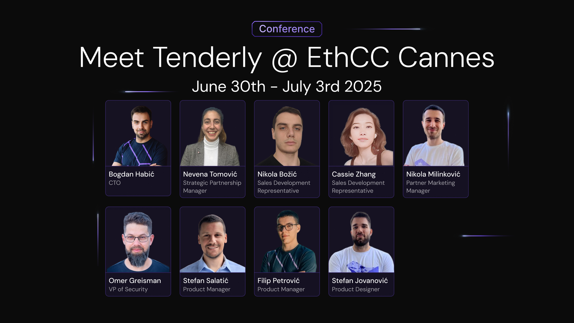 Feel free to reach out to any member of our team who will be on the ground to share your thoughts, feedback, and ideas, and to learn more about Tenderly's plans and roadmap. We'll be sharing event updates throughout the week.