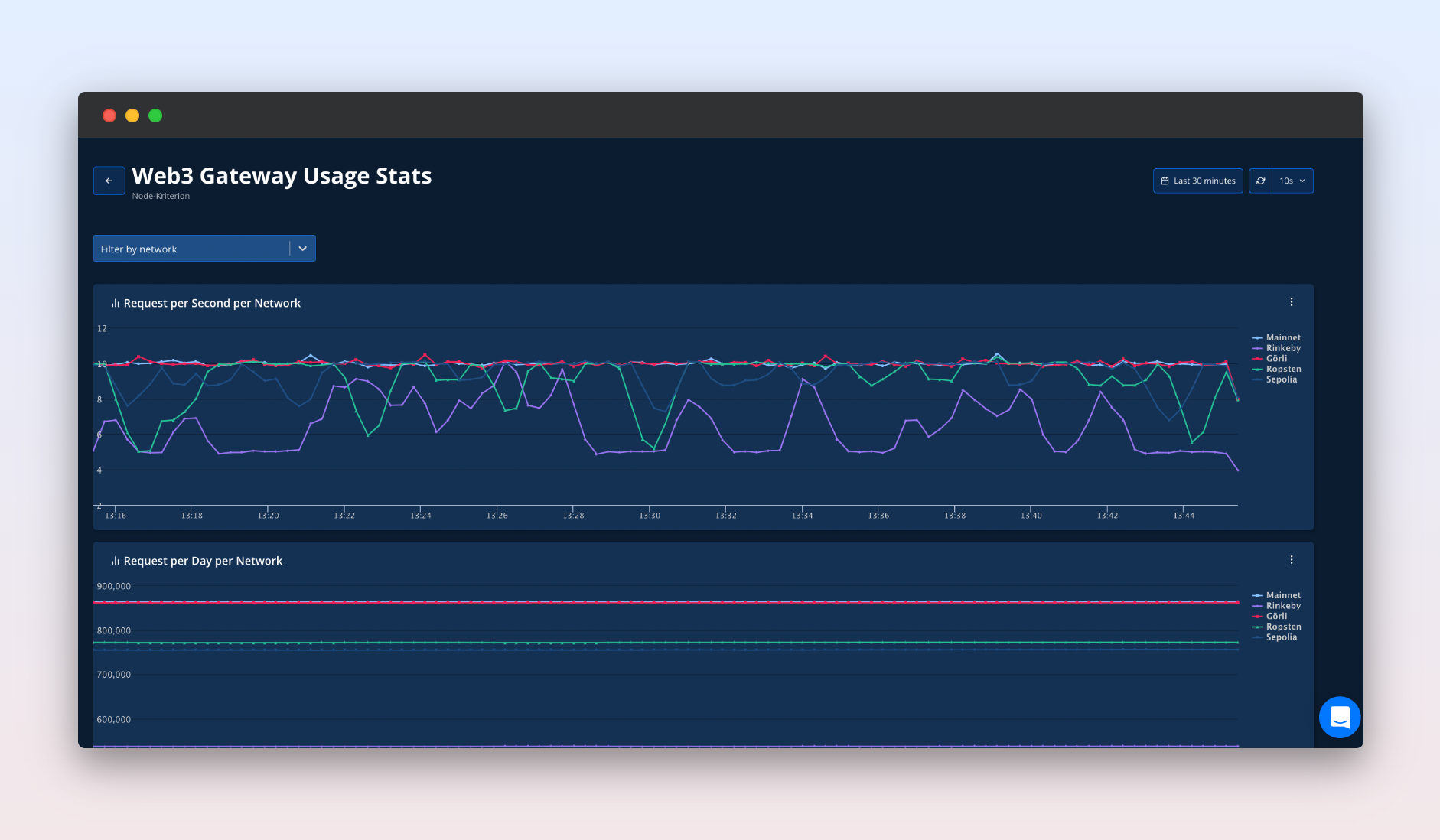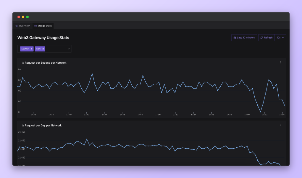 Here, you can monitor the requests you’re making per network, filter usage stats based on different time intervals, view the number of failed requests, and more.