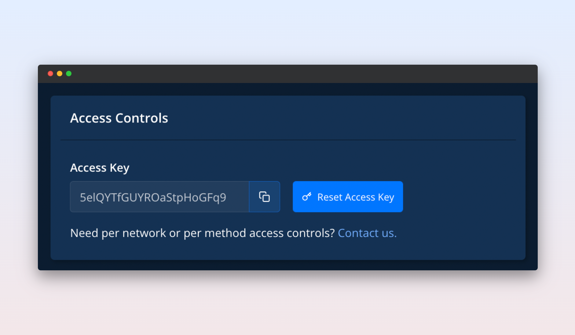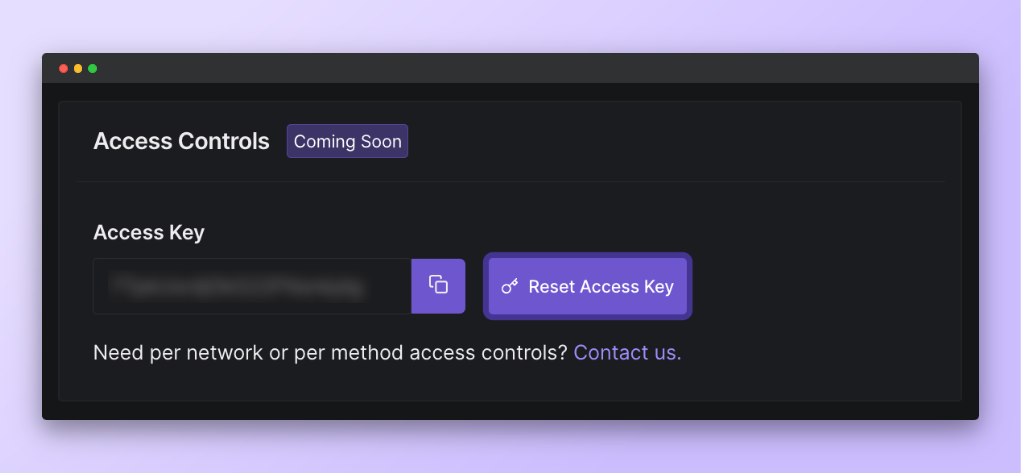 - The Access Controls at the bottom of the page allow you to easily copy, manage, and reset your access key with a single click.