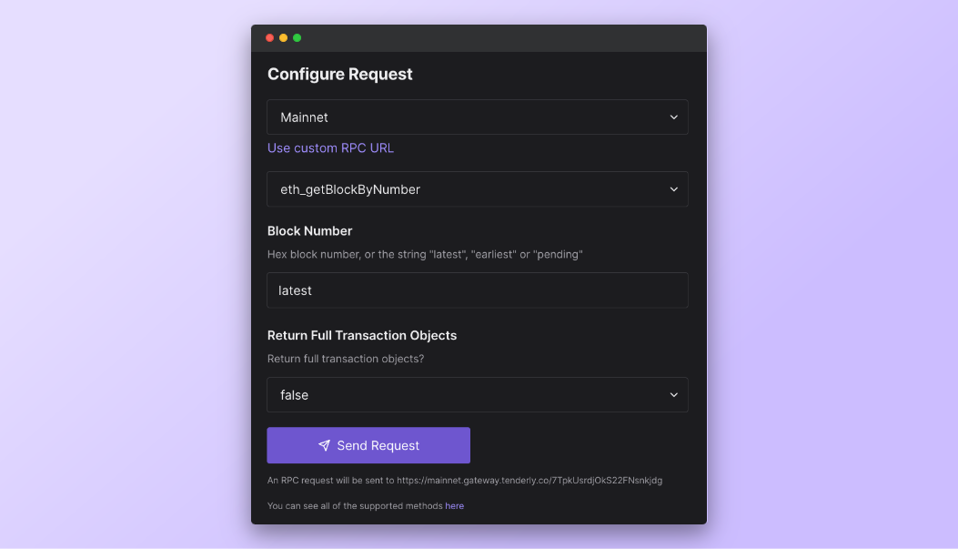 Check out the documentation to browse through all the standard and custom endpoints in Tenderly Node.